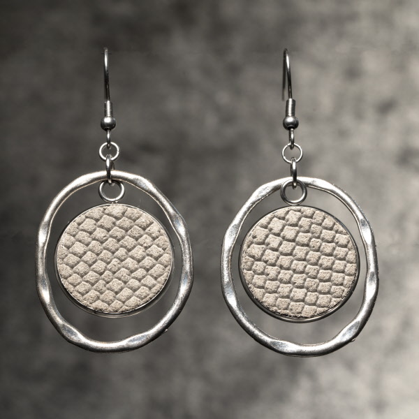 Zilver oorhaakje (nikkelvrij) met grote cabochon van taupe kleurige slangenprint