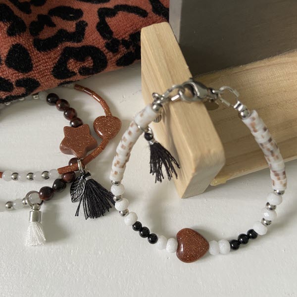 LIEF! Armbandje met oa katsuki kraaltjes en goudsteen hart.